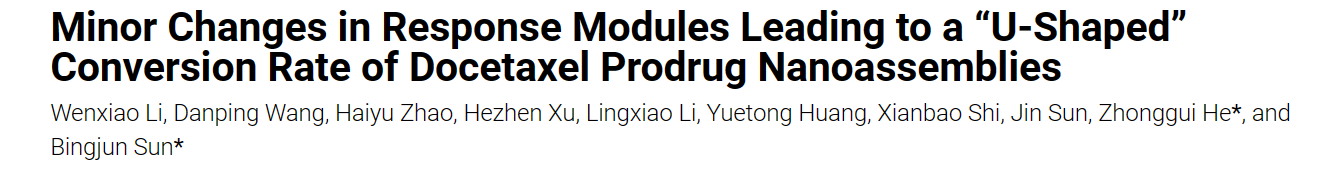 鉴于此,beat365官方网站何仲贵教授和孙丙军教授在美国化学会旗下纳米科学和纳米技术顶级期刊Nano Letters (IF=10.8) 在线发表题为“Minor Changes in Response Modules Leading to a “U-Shaped” Conversion Rate of Docetaxel Prodrug Nanoassemblies”的研究论文,开发了模块化的多西他赛前药纳米组装体,,发现响应模块的细微变化会显著影响前药纳米组装体的抗肿瘤效果和安全性。