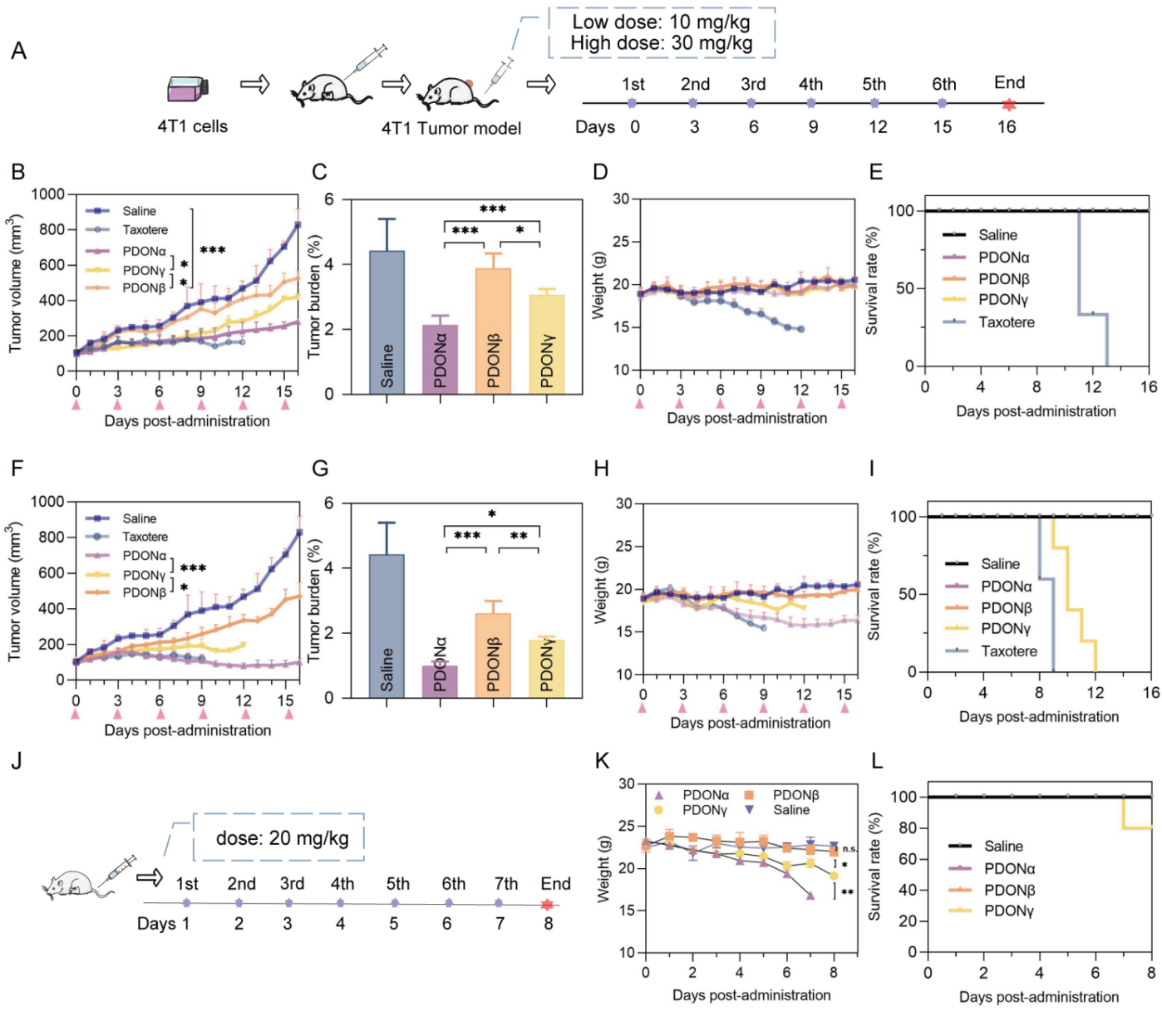 图6. PDONs的的体内抗肿瘤效果。