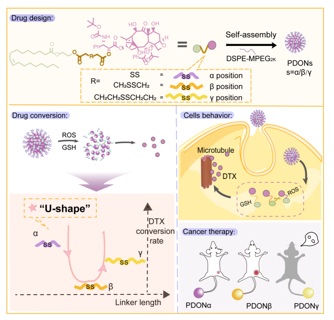 图1. 差异化响应模块的多西他赛前药纳米组装体用于癌症治疗的研究。