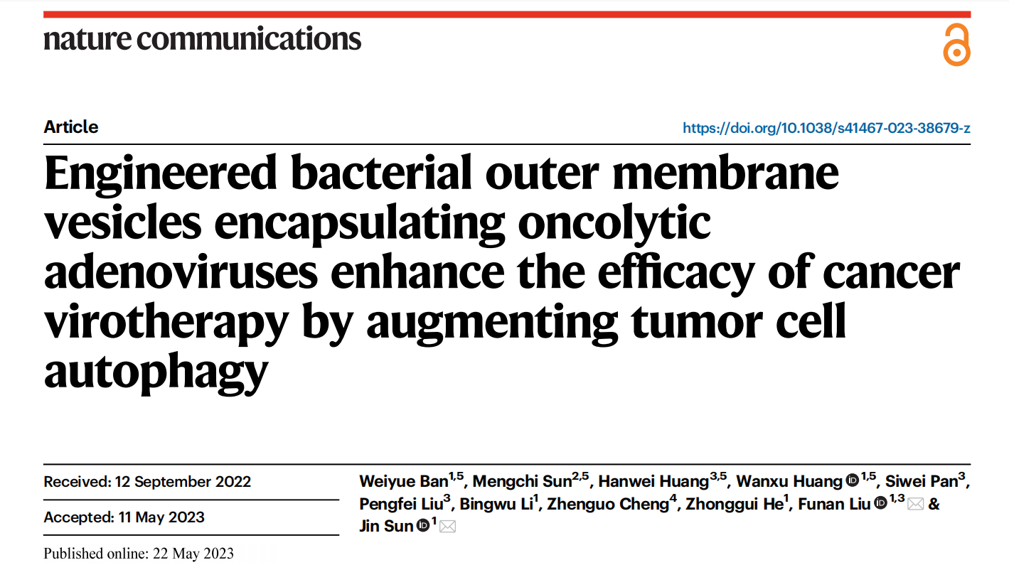 beat365官网孙进教授-孙孟驰副教授团队《Nat. Commun》:基于工程化细菌外膜囊泡的溶瘤病毒静脉递送系统的构建及免疫增效的机制研究